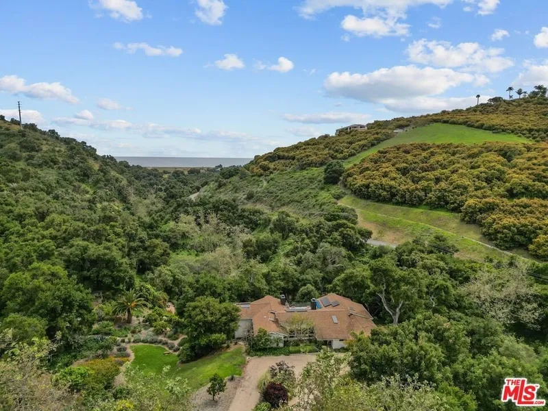 10-acre unique El Capitan Ranch offering. Exclusive coastal gated community with access to a private beach. The 4500-sf contemporary ranch home is also privately gated and features 5 bedrooms and 5 baths, including a guest suite and media/game room. It is open, light, and bright, with vaulted ceilings, chef's kitchen, butler's pantry, 3000-bottle temperature-controlled wine room, solar w/battery backup, and Tesla charging. The lush, park-like setting is breathtaking, with a running stream, 15' waterfall, swimming hole, tropical walkways, oaks, and sycamores. A true one-of-a-kind property.