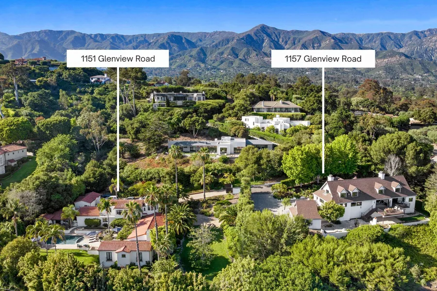 A rare opportunity to own two exceptional residences side by side in Montecito's coveted Pepper Hill neighborhood, offering stunning ocean views and unmatched versatility. 1151 Glenview is a gated Spanish Colonial Revival retreat with a 4BD/3.5BA main home, studio guest casita, detached office, pool, spa, and lush gardens. Next door, 1157 Glenview is a contemporary Tudor-style 4BD/3.5BA home with soaring ceilings, bi-folding glass doors, and sweeping coastal views. Sharing a private driveway, these properties create a unique compound ideal for multigenerational living, extended guests, or a private retreat-just minutes from the Montecito Club, Rosewood Miramar, beaches, and both Villages.