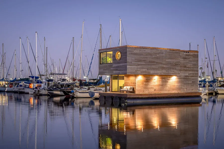 It is here where the anchor drops. A one-of-a-kind masterpiece designed and rebuilt by a father (engineer) and son (carpenter) over a period of four years. No detail was overlooked in crafting this remarkable gem. The Thomas Jefferson is berthed in the beautiful and sought after Santa Barbara Harbor. As the Municipal Code has imposed restrictions on similar structures, it emphasizes the inherent value, exclusivity, and rarity of this floating home. With the exquisitely framed views of the ocean and mountains, there's a profound connection to nature and the elements. Professional hand-crafted carpentry throughout; quartered and rift white oak floors and staircase, pops of burlwood, mahogany, brass, and wool, and marble countertops with two integrated sinks. Graylite II glazed windows, Viking and Fisher & Paykel appliances, large indoor shower with a white Tadelakt plaster finish with full skylight, and after paddleboarding, surfing, or sailing, take a hot outdoor shower. Interior roof deck access with views for miles. Between the tint on the glazing and numerous interior lighting options, it's easy to remain invisible indoors; keeping the inside in and the outside out.