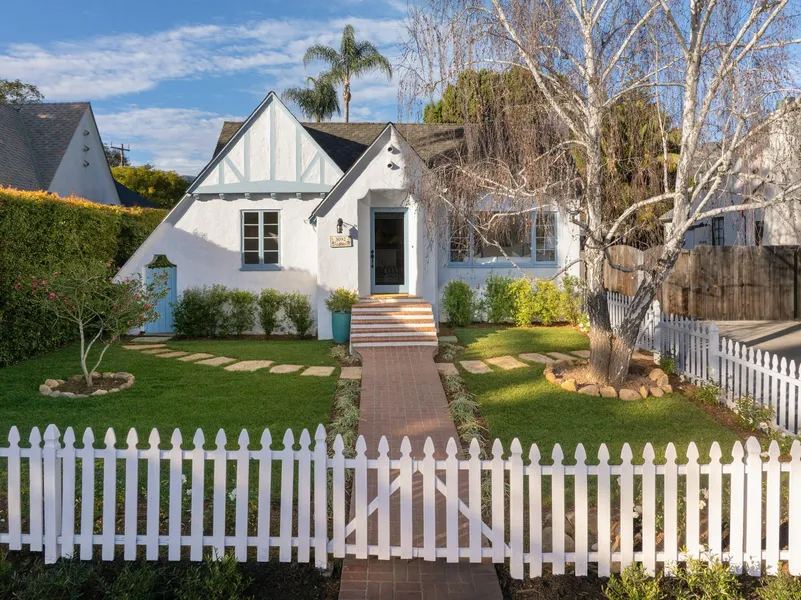 Tucked within Santa Barbara's beloved San Roque neighborhood, this 1930s Santa Barbara Tudor blends storybook appeal with timeless architecture. Sunlight fills the home through picture windows, highlighting period details and preserved character throughout. The single-level residence offers 2BD and 2BA, including an updated primary bath with heated floors. A refreshed kitchen pairs Viking appliances and honed marble countertops with classic cottage charm. Outdoors, low-maintenance landscaping, a grassy garden, and a white picket fence enhance curb appeal, while a tranquil rear garden offers privacy. A detached ADU with a kitchenette and full bath provides flexible living space. Just moments from all the local favorites, this is a rare opportunity to enjoy a classic Santa Barbara gem.
