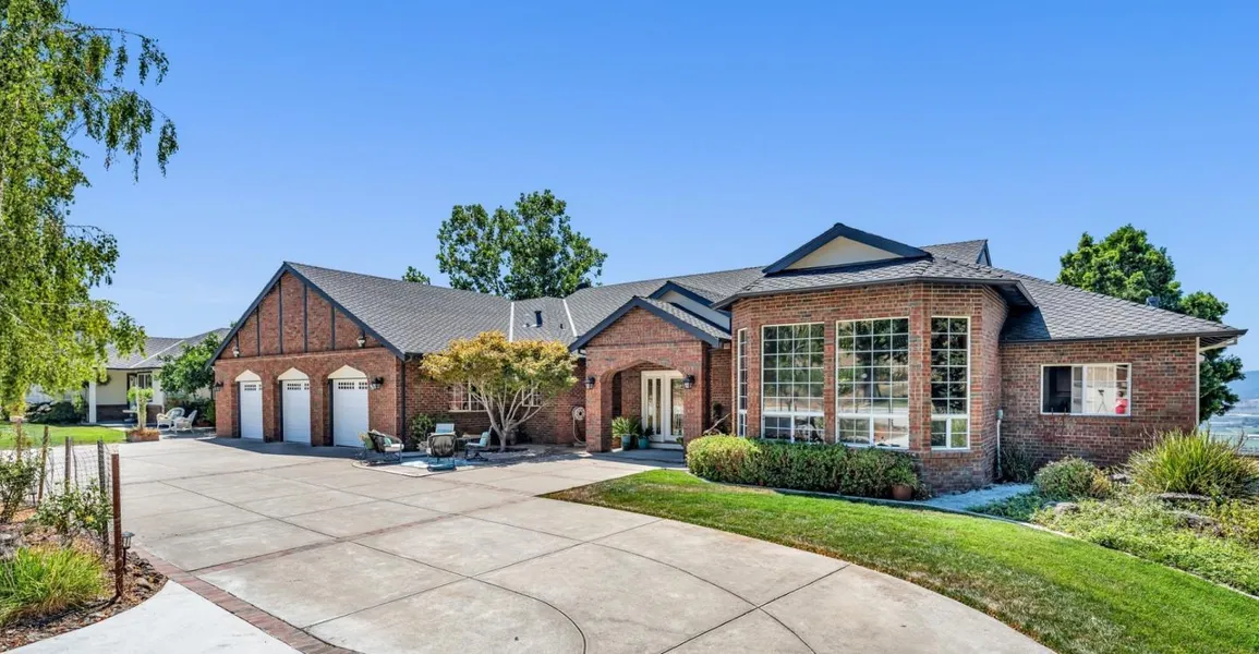 Situated on 10 acres with panoramic valley and city views is this magnificent Gilroy estate featuring 5,000 SF of living space on one level which includes a 900 SF self contained 1 bedroom guest home. The main entry greets you with a living and dining room area boasting 22 foot high ceilings. The gourmet kitchen with large island, wrap around bar, breakfast nook and great room welcome family gatherings. The primary bedroom includes a sitting area, fireplace, generous his/her closet space and has direct access to the large covered patio. A wood paneled office with built in cabinetry looks out to the private vineyard. 2 more bedrooms share a private bathroom. Be amazed by the captivating views from virtually every window in this home. Energy costs are assisted with built in paid for solar. The private paved road is gated as is the entry to the fence enclosed property. Attached 3 car garag...
