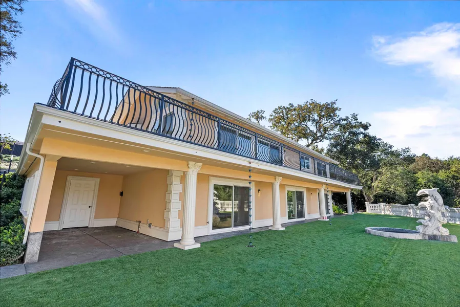 Welcome to this sophisticated and extensively updated home on an acre of mature oaks, lush young redwoods, and rolling lavender hillsides. The three-bedroom, two-and-a-half-bathroom home spans 2,640 square feet and blends modern sophistication with classical elegance. Enter through regal pedestrian gates with decorative wrought iron scrollwork and explore the multiple levels connected by graceful, illuminated walkways and a stunning 8-foot-wide staircase flanked by Italianate white balusters. Newly built retaining walls enable grounds that include a 2-car garage, ample outdoor parking, a large greenhouse, a playhouse, and tremendous expansion potential. A wide balcony wraps three sides of the home, creating graceful indoor-outdoor flow. Inside, natural light floods through eight 8-foot-wide sliding doors, ceilings soar to 12.5 feet, and deluxe bathrooms boast luxurious vanities, Toto Neo...