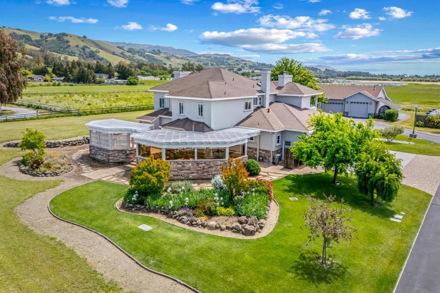 Welcome to this countryside oasis in beautiful Morgan Hill. This 6-bedroom home features three en-suite bedrooms, with one located on the ground floor, making it ideal for multigenerational living. Situated on a generous flat 4-acre lot, offering ample space for gardening, RV parking with full hook-up, and an expansive 1850 square foot workshop with three separate garage doors perfect for the car enthusiast or anyone who loves to tinker. Potential for a barn, horses, vineyard, and extra acreage for a secondary dwelling or ADU. The kitchen is a chef's dream with a gas cooktop, quartz countertops, an electric oven, and a wine refrigerator. The home boasts an open and inviting floor plan renovated in 2020. This rare gem is conveniently close to town, making it easy for commuters, yet it still feels incredibly rural.