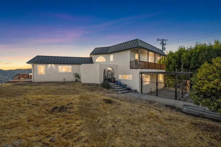 Perched atop the highly desirable Saratoga Hills, this stunning 4-bedroom, 2-bathroom home offers the perfect blend of privacy, natural beauty, and modern convenience. Situated on 2.27 peaceful acres, the property boasts sweeping views of Monterey Bay - and on clear days, even glimpses of the iconic Golden Gate Bridge. Inside, the home features beautiful arched windows that frame the breathtaking surroundings and fill the space with natural light. Thoughtfully designed across three levels, the layout provides both comfort and flexibility. This home is located within the sought-after Saratoga High School District, offering exceptional educational opportunities. Upgrades include a Full House Ozone water filtration system for pristine water quality, two Tesla battery backup power systems paired with a generator for reliable energy security, and high-speed AT&T fiber optic internet with Starlink backup, ensuring uninterrupted connectivity for work and play. Despite its tranquil mountain setting, the home is easily accessible via paved, well-maintained roads and is just 15 minutes from the heart of downtown Saratoga. A rare opportunity to own a retreat with iconic views, architectural charm, and serene seclusion - plus the modern amenities that elevate everyday living.