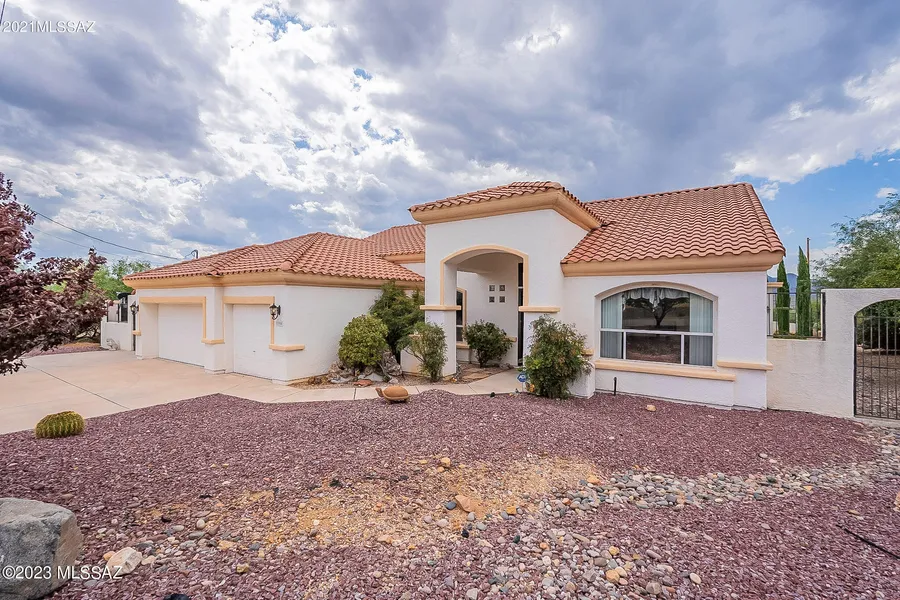 Rio Rico is known for its picture-perfect views, desert landscaping, and custom homes. This property is perched on the perfect lot to highlight all its Rio Rico charm. Stepping in the front door, you are warmly greeted by a large living and dining space. Adjacent is a large great room featuring a living room and kitchen with granite countertops and stainless-steel appliances. The generously sized Arizona room opens from the Great Room and serves as a versatile living space, with large windows framing the mountains' panoramic view. The beautiful tile floors flow seamlessly throughout the whole house, adding to the home's overall aesthetic. The backyard is a peaceful retreat that features a sparkling pool, a large gazebo, and a workshop. Immerse yourself in the private pool area