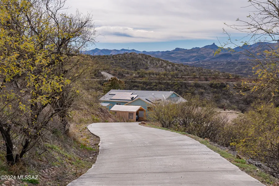 Views, Views, Views, Space and Total Privacy are highlights of this property location. The 6.23 acres overlook state-owned land so your panoramic views will never be compromised. With no HOA, you are allowed outbuildings, horses and a swimming pool. Major upgrades include owned solar (2023), tankless hot water heater, semi-custom primary closet, new heating/AC replaced in 2023, 8' x 10' Tuff-shed (2022), 12' x 16' electrified wooden workshop (2023), 2022 Master Spas brand Hot Tub, new dishwasher (2023), new microwave (2024), new 300' concreted driveway (2022), and new quartz kitchen countertops (2022). Two ensuite bedrooms work well for extended family or guests. You will love the open and bright great room.