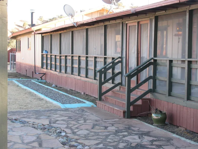 This unique property offers charm and privacy, National Forest is close by to support the outdoor enthusiast's endless hiking, hunting or horseback riding. Just minutes from Parker lake and Sierra Vista by way of Fort Huachuca's West Gate. Home is near the base of the Huachuca Mountains at 4875 feet of elevation providing year round pleasant temperatures. The home's lot has great outdoor living spaces, BBqs and a wrap around porch with hot tub. Your Green house can get the plants started early and a couple deer proof gardens allows for fresh veggies into the growing season. Storage space is plentiful with 4 enclosed garage spaces and other storage out buildings. There is a 495 Sq/ft master suite complete with wet bar, gas fireplace and French doors opening onto a Arizona room, this raised addition is attached to a 14 ft wide mobile which has been completely renovated. There is even a guest casita and RV hook up for others to stay when visiting.