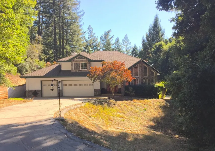 Beautifully crafted custom home in private setting with custom windows and lots of natural light features vaulted ceilings, cathedral windows, bamboo flooring, gourmet kitchen with instant hot water dispenser, wine refrigerator and pantry, separate living, dining and family rooms. Master suite with 2 walk-in closets, fireplace, balcony, and spacious bath with separate shower and tub with jets, heated towel rod. Office/den room downstairs could be used as 5th bedroom. Dual fireplace connected between living and dining rooms. Enjoy outdoor living with the 3-tiered rear deck that includes a fabulous outdoor kitchen, hot tub, gazebo, and outdoor shower.