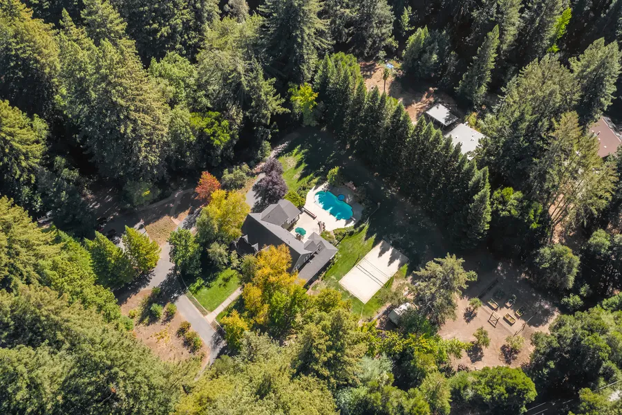 Lovely property on 10 serene, flat acres surrounded by majestic redwoods with a creek flowing through waiting to be explored. The home feels secluded, and wonderfully private but is only an 8-minute drive to town and conveniently located near Hwy 17. The main home is appx 4227 square feet with 4 bedrooms and 4.5 baths, with a spacious rec room, office, bonus room, gym and three car garage.