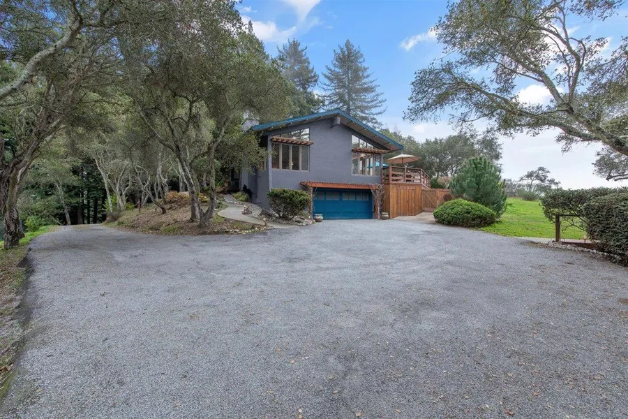 Thatcher Thompson custom designed 3 bdrm, 3 bath home, 2078 sq. ft. with Cathedral ceiling, gorgeous woodwork, hardwood and tile floors. Gourmet kitchen with Subzero, Wolf, Bosch appliances, custom cabinetry, drummeled marble countertops. House includes 2 master suites, main bath with jetted tub and newly remodeled bathroom. Part of overall sq. ft. includes 485 sq. ft. permitted ADU completely remodeled, new bath with radiant floor heating. Spacious deck overlooks the pool and rolling meadow. Separate sauna. Gated entry, 2 car attached garage. Truly an oasis in peaceful Larkin Valley