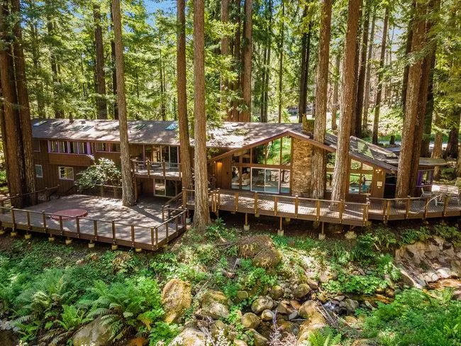 Your Own Private Zen Oasis in the Mountains. Spectacular, resort-like estate surrounded by redwoods, nestled alongside the calming flowing water of Jamison Creek. Easily accessible location just 6 minutes from downtown Boulder Creek and equal distances to Santa Cruz and Los Gatos. High vaulted, open beam ceilings with numerous skylights and floor-to-ceiling windows invite abundant natural light filtered through the redwood canopy. Enormous multi-level private deck with Hot Tub. Grand Master Bedroom. Multiple En-suite guest bedrooms. Living space with separate entrance offers a perfect guest suite or au pair accommodations. 2 Car Garage + separate 1 Car Garage that could also be a workshop. Tons of Mountain Charm with redwood interior, stained glass lighting and 3 massive Fireplaces. Whether you are looking to work from home, retire to a peaceful location, or be equal distances to the ocean and Silicon Valley, this is the perfect home!