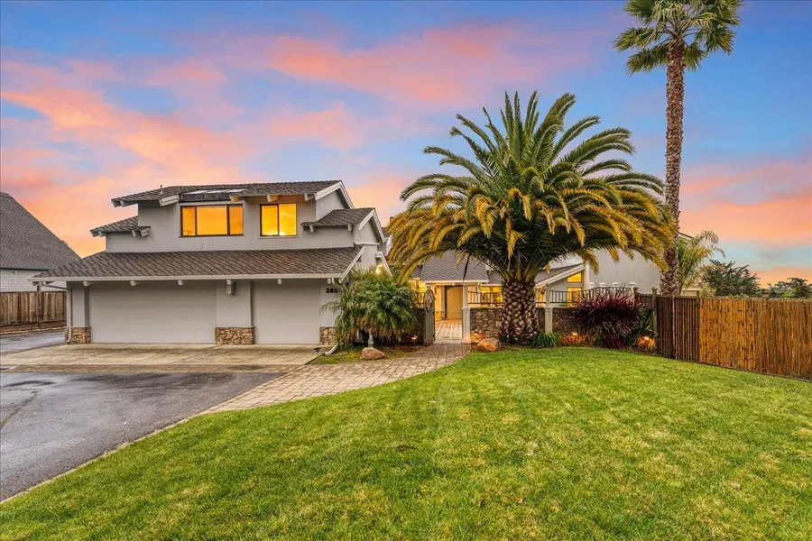 Welcome to resort-style living. If you are looking for an elegant spacious home with ocean and greenbelt views plus ultimate privacy, this is it! It is ideally perched on a sunny ridge just moments to Aptos, Soquel & Capitola Villages. The private entrance courtyard is flanked with towering palm trees, custom gate and water feature. This contemporary home is flooded with natural light due to the high ceilings, an abundance of windows and skylights. It boasts four spacious bedrooms & four full bathrooms plus, a converted garage space which is ideal as a guest room or office area. An entertainers dream home, it is complete with gleaming hardwood floors, updated bathrooms & a spacious chef's grade kitchen perfect for any discerning chef. Beautifully appointed with separate living, dining, family & laundry rooms. Two upstairs on-suite bedrooms with separate staircase access. Sleek updated ba...