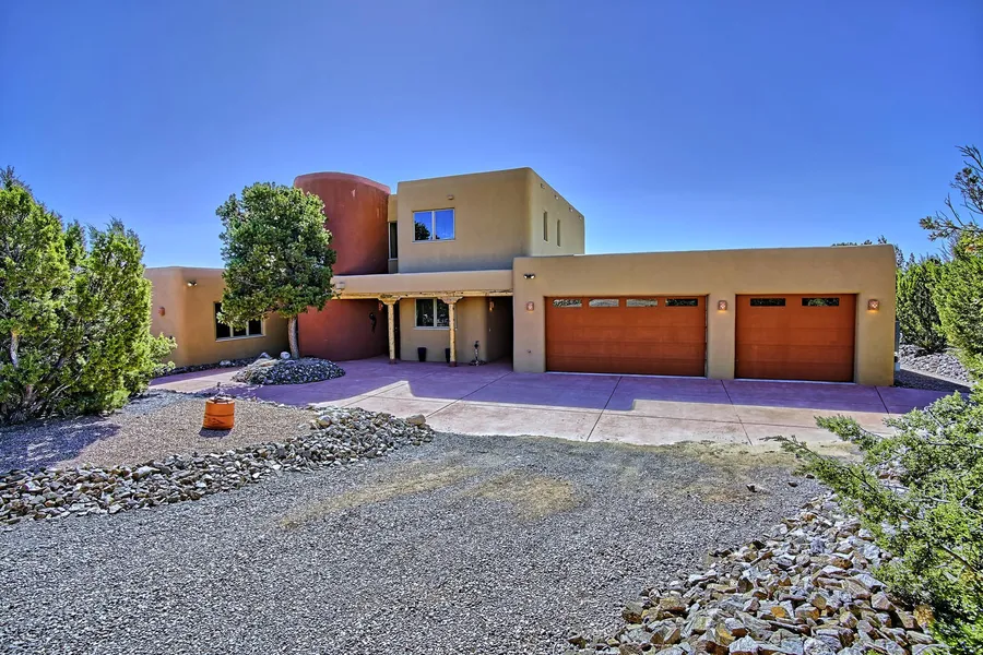 TRANQUIL PUEBLO! If you're dreaming of a spacious and gracious home sitting on over 11 acres close to amenities, this custom pueblo-styled home may be the answer. Built with Apex walls, it is fire-, insect- and allergy-proof, utility-friendly and amazingly comfortable. Enjoy the beautiful, wooded property with views of South Mountain up close and a large pond. Entertaining is made simple with two backyard patio areas, a large loft deck. Many wonderful features, incl, spacious rooms, abundant storage, 3-car garage and workshop, well-equipped kitchen, fenced and gated and great privacy. This very special home is ready and waiting just for you...YOU'RE HOME!