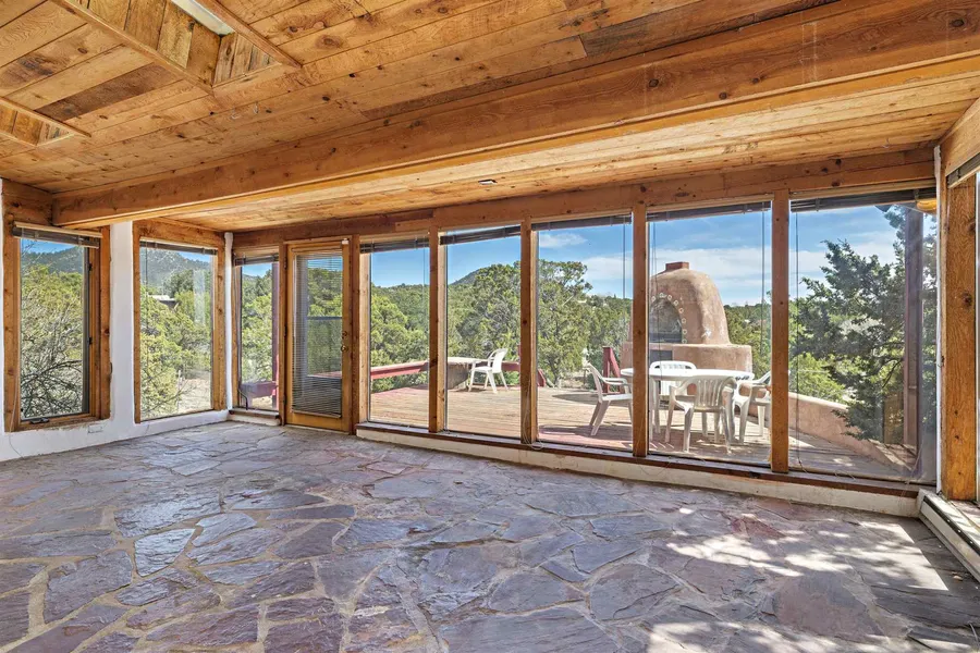 Three bed, 2 bath home in Hondo Hills is ready for its next owner to return it to its former glory. Large, bright great room with kiva fireplace and vigas is a comfortable living space. Cozy library space with bookshelves and banco. Galley kitchen is waiting to be re-done. Saltillo tiles throughout. Sunroom leads to rear deck and mountain views. Acreage, a garage, an established neighborhood, and close to town. This house has "good bones and just needs some TLC. Being sold as is.