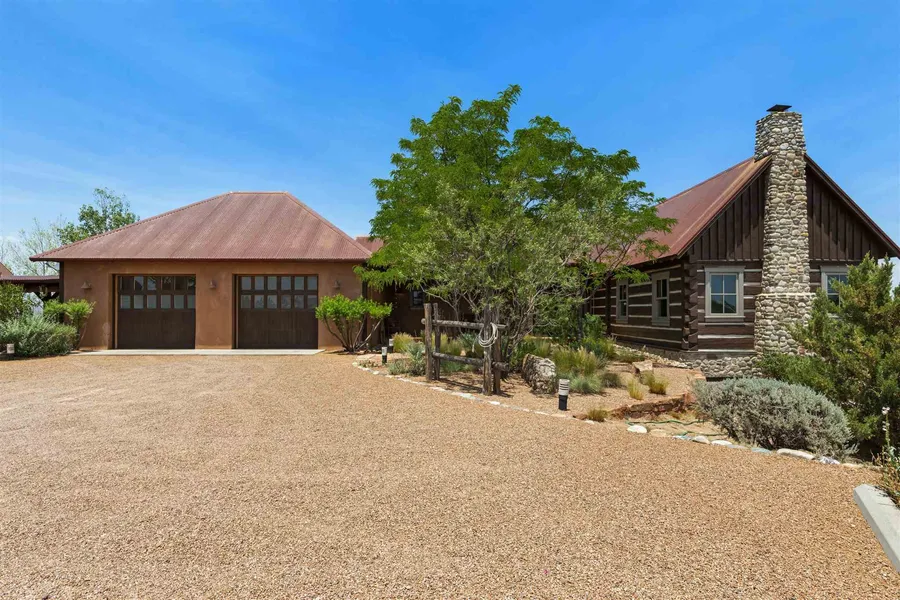 VIEWS FOR HUNDREDS OF MILES AND FROM EVERY ROOM. Roll into town and relax in this truly luxe log home designed by noted architect Pedro Marquez. Massive solid logs, huge picture windows, floor-to-ceiling river stone fireplaces, handsome wood floorsall maintained so impeccably that it feels almost new. Embrace the country vibe simplicity, quiet, fresh air in this superb quality build by Dennis Saye. The Estancias neighborhood sits adjacent to 68,000 acres of open space with panoramic views of both mountain ranges. This home has stunning curb appealenter the drive lined with Western fencing and landscaping its all pulled together! The main house is a perfect size and FAB. A separate cool Bunk House has 2 bedrooms and shared kitchen and bath. Both residences are SINGLE LEVEL with no interior steps. Relax and rejuvenate as you entertain friends and family under the large portals. Enjoy the s...
