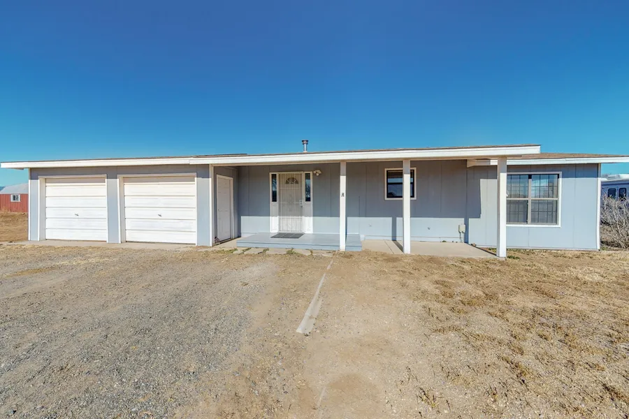 Sun, storage and space is found in this three bedroom, one bath, two car garage, solid 1282sf home on 1.25 fenced acres! Step into the open floor plan and onto the new laminate wood flooring where all appliances convey in the bright kitchen with plenty of counterspace. Make memorable meals under the kitchen skylight while enjoying the family room that's just on the other side of the bar. Get cozy in the primary bedroom that has two huge closets, a new heating unit and new flooring. Bathe under the stars in the large bathroom that has a skylight, new paint and updated water heater. The other two large bedrooms are separated from the primary for complete privacy. The large workshop also conveys. Please submit pre-qual letter with offer.