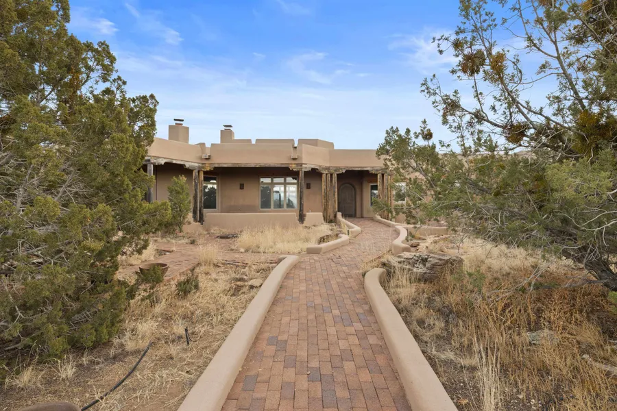 For the buyer who isnt afraid of investing the time, effort, and money to complete unattended maintenance, this property in the coveted and gated La Tierra Nueva community represents a golden opportunity. Sited on nearly 12 acres, this 3,500 square foot home is ready to be restored to what it can be today, and the property is priced accordingly. The 2-bedroom, 2.5 bath residence features radiant in-floor heating and numerous Pueblo revival accents including viga and plank ceilings, kiva fireplaces, lintels, carved corbels and herringbone motif doors. Large picture windows welcome natural light and views of the Sangre de Cristo and Jemez Mountains. The extensive outdoor spaces include an east-facing portal from which to view the impressive Sangre de Cristo views, and even more imposing views of the Jemez Mountains from the west-facing portal. The home is served by a private well and includes a fenced garden area with raised beds and 2 nearby storage rooms.