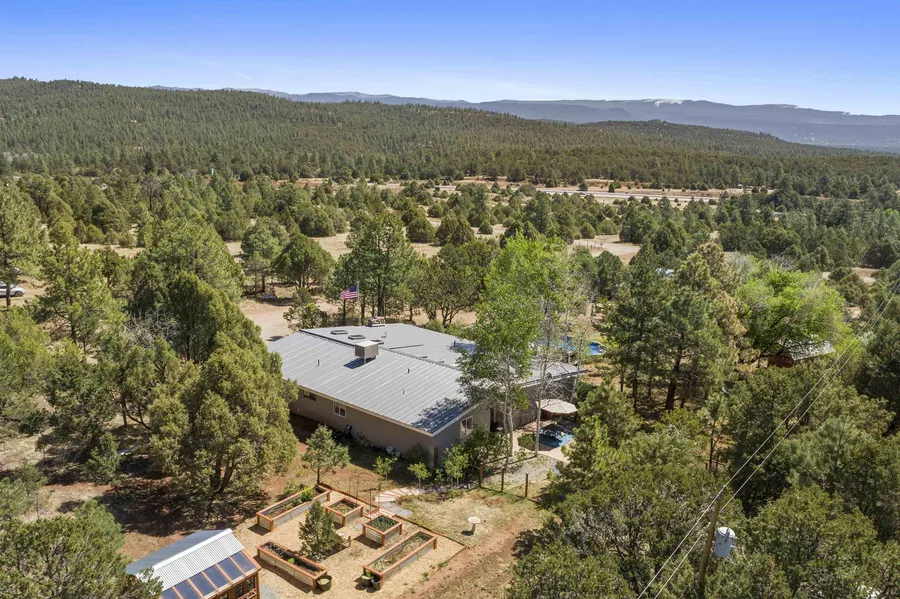 Located in the beautiful Glorieta estates just 20 minutes from Santa Fe. The large Ponderosa pines and Aspens surround this gorgeous open concept modern farmhouse; 4 bedrooms, 3 bathrooms on almost 2 acres. Home was fully renovated in 2020 which includes brand new roof, stucco, kitchen, living room, bathrooms, floors, patio, blinds, trim, interior doors, instant water heater, boiler, water softener, and more. Extra small touches include a fancy bidet in the master bathroom, USB outlets installed next to master bedroom night stands and in the kitchen, Nest camera and thermostats installed, electric fireplace in living room with changing colors, etc. Brand new laundry room/mud room was added on in 2020. On the bottom acre there is a 3 stall barn, with chicken coop, and space for farm animals and horses(water and electricity at the barn). The second acre is a separate lot which gives you th...
