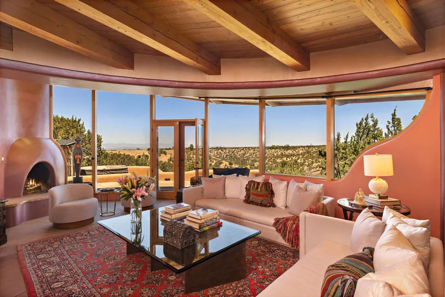 This private sanctuary in the charming Arroyo Hondo area provides many options for the next owner. In addition to the captivating main residence, three additional buildings on the premises can function for a variety of purposes -- either as guest casitas, a caretaker’s residence, a highly desirable home office, a studio, or the ultimate workout facility. Just minutes from town and located on 22 acres, this special compound provides for exceptional Santa Fe living. The spacious living room opens to a state-of-the-art kitchen with a large media room and atrium curving to one side of the central area and a second office/study with a bath rounding off the other. The upstairs includes a Primary Suite with an office, opulent master bath and dressing area as well as two guest suites with private baths. The 1-bedroom Grand Casita features a full bath, sitting area, kiva fireplace, kitchen/dining area and 2 storage rooms. The second 1-bedroom studio casita is beautifully compact yet fully equipped with a dining room/kitchen area. The stand-alone 1-bedroom West Casita offers every comfort and convenience including a laundry room and carport.