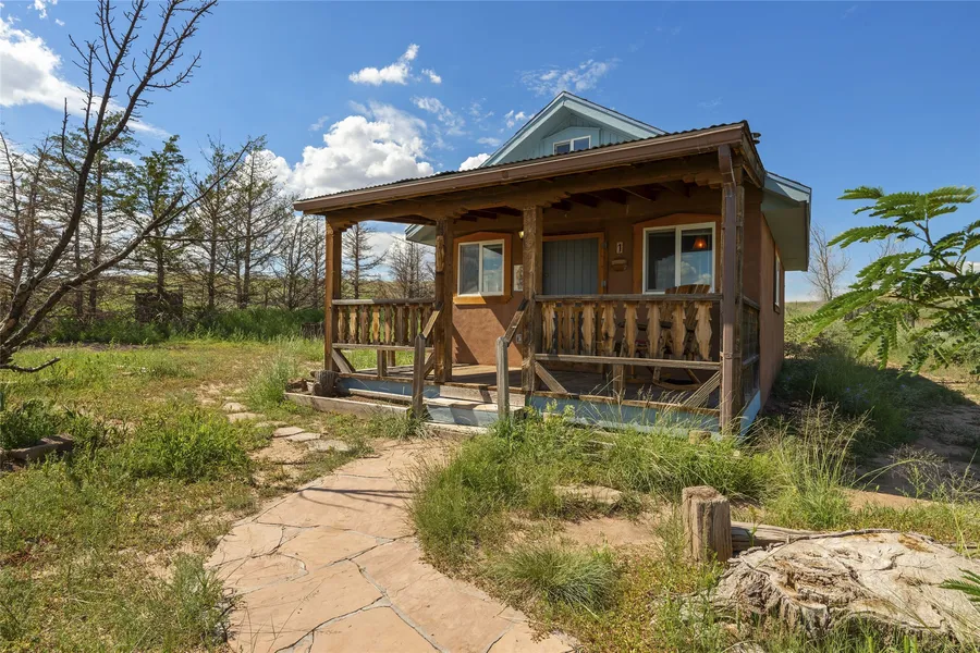 Bathe your eyes in breathtaking, bedazzling views of the Galisteo Basin and Wave from this tidy, one-room cabin on 10 acres. Experience the atmosphere of the Old West along with the comforts of modern living, including a newly-remodeled bathroom and a full kitchen. On a rise above the cabin is a water spigot for gardening and a pretty, stone shed, with brick floor, for additional storage. This sweet little home has been a full-time residence. It could also serve as an appealing retreat for writers and artists or as an income-generating rental. Or, build a bigger home and use this casita as an office or for guests. Located between two major movie ranches, the general locale has been featured in many films and mini-series including Thor, The Harder They Fall and 3:10 to Yuma. Enjoy sunrises, sunsets and sprays of stars from the front porch of this special property, a wide-armed embrace of...