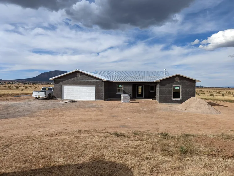 New Construction Home in Edgewood, NM! Be the first to enjoy this new home on a corner lot. Open floorpan with abundant natural light. The large kitchen will have maple cabinets with a pecan stain, quartz countertops, tile back splash and a large island. Appliances include a gas stove, dishwasher, microwave, and range hood. Custom gas Mendota Fireplace that boosts 72% efficiency. Oversized garage with plenty of space for a work bench. All utilities are underground so no unsightly overhead lines. You'll have community water AND natural gas. The back porch is 336 sq ft with amazing views of the Sandia's and South Mountain. Call your realtor for additional building specs - this one will be completed in November.