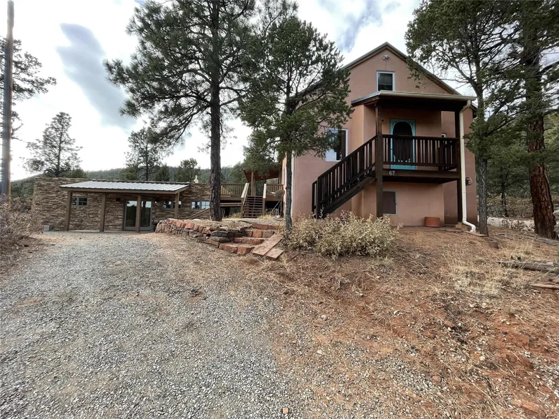 Take a glance at this unique property located only 20 mins from Santa Fe! This property doesn't just offer privacy but marvelous views of the Santa Fe National Forest and the Glorieta Mesa from the primary residence and studio. If your looking for a property with a lots of qualities and distinctness this is the one! The studio offers potential for a guest house, it was previously used as a glass blowing workshop! There are two septic systems, one for the home and studio. The other for the RV pad. RV pad has utilities ran to it to accommodate any RV! There are also two propane tanks, one for the home and another for the studio. Back yard borders National Forest Land. Horse friendly, New combo system was installed in primary residence in 2017. Studio was built in 2016, has radiant floor heating. Studio also includes high end ventilation system perfect for any artists! NEW laminate wood floor has been installed in the master bedroom! Seller to clean carpets before closing.