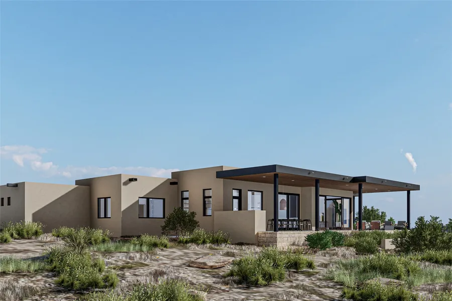 This is a rare opportunity to enjoy state-of-the art construction in one of the most desirable settings in Santa Fe. Premier local builders Zachary and Sons will bring six generations of superior experience to the completion of this single-level contemporary Pueblo-style home on an elevated two-acre site in the heart of Las Campanas. The three-bedroom, four-bath 3,224-square-foot floor plan facilitates comfortable living, with the bedroom suites flanking large open living and entertaining spaces that include a beautifully crafted kitchen, a dining room, a living room, and grand portal for outdoor dining and entertainment. Architect Lorn Tryk has brought to the project his proven skill of harmonizing contemporary design with classic New Mexican features, and the result is an exquisite balance of hard and soft—combining a façade of earthen stucco with crisp edges and contrasting black metal framing with interiors featuring gentle wood and soothing white surfaces. The new owner will have the opportunity to customize the home with a selection of fine finishes. The location—within walking distance of the community’s spa, tennis courts, and fitness center—enjoys Jemez and Sangre de Cristo Mountain views and allows for nightly enjoyment of New Mexico's renowned sunsets as well as the full spectrum of vivid seasonal color shifts to the east.