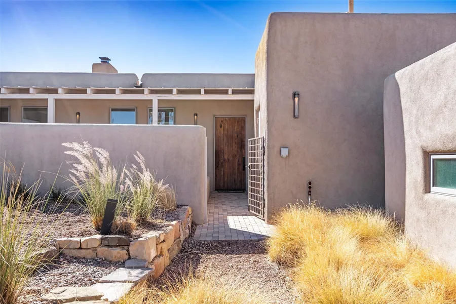Spectacular adobe home and casita by custom builder Andrew Geer created from handmade adobe bricks in the historic village of Galisteo, offering luxurious living and majestic views overlooking the beautiful Cerro Pelon Ranch. Entertainers and chefs will adore the kitchen with Energy Star appliances, a Wolf dual fuel range oven, and incredible views for doing dishes. The home?s large windows allow the outdoors in, creating a spacious feeling in the dining and main living areas in this open floor plan 2 bed, 2 bath main home. The contemporary design features modern amenities including an energy efficient HERS Index of 55, radiant heating, and satellite internet with whole house wi-fi, combined with old world accents such as brick floors and beam ceilings, with a sleek fireplace and intimate ambiance. Nature lovers will prize the abundant natural light from walls full of glass doors and picture windows, as well as a private courtyard and open back patio gazing across the epic landscape and dazzling skies. Artists, remote workers, and guests will love the adobe studio casita with office/flex nook and ? bath. This special property is a unique blend of past and present, an alluring oasis a world away yet within arms reach of the vibrance and culture of downtown Santa Fe. Experience its splendor today.