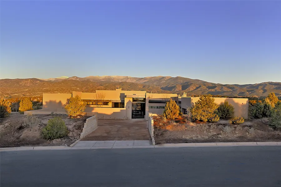 Recently built by Dressel Construction, this spectacular contemporary home on one of Monte Sereno's premier lots boasts expansive views and the finest fixtures and features for modern-day living. The easy single-level floor plan is both graceful and functional, and nearly every room enjoys a magnificent vista. Oversized sliding glass doors in the sophisticated open-plan living and entertaining areas blur the lines between indoors and out and open to grand portal spaces, allowing for the consummate Santa Fe living experience. A gourmet kitchen with stone countertops and appliances from Wolf and Sub-Zero will satisfy the most demanding chef. A luxurious three-room primary suite is secluded on one end of the house, while the guest suite benefits from the privacy of a location on the other end.