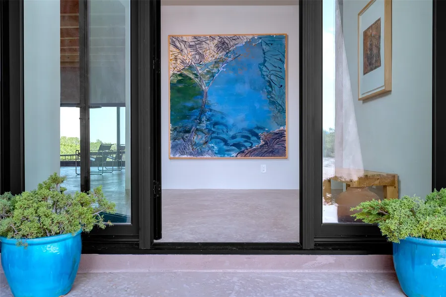 Sited on 4.2 acres and just 20 minutes to the Plaza, this newly built contemporary style 2480 sq ft home offers a gorgeous and panoramic view of the Ortiz mountain range on a very private and tucked away lot in Rancho San Lucas subdivision. New construction by established and esteemed builder, EJ Jennings. Home features sleek "picture" frame windows, quartz kitchen counter top, Euro-style cabinetry throughout, beautiful natural beams in charming open design living/dining/kitchen, portal on view side with stone stairway leading to open space, gas fireplace in living room, extensive tile work in kitchen and baths, designed to feature your art collection, Sierra Pacific windows, third bedroom is generous and designed to be used as a studio/office or second expansive bedroom, concrete floor is artfully finished, EV outlet and solar outlet installed for future hook up. All new appliances have...
