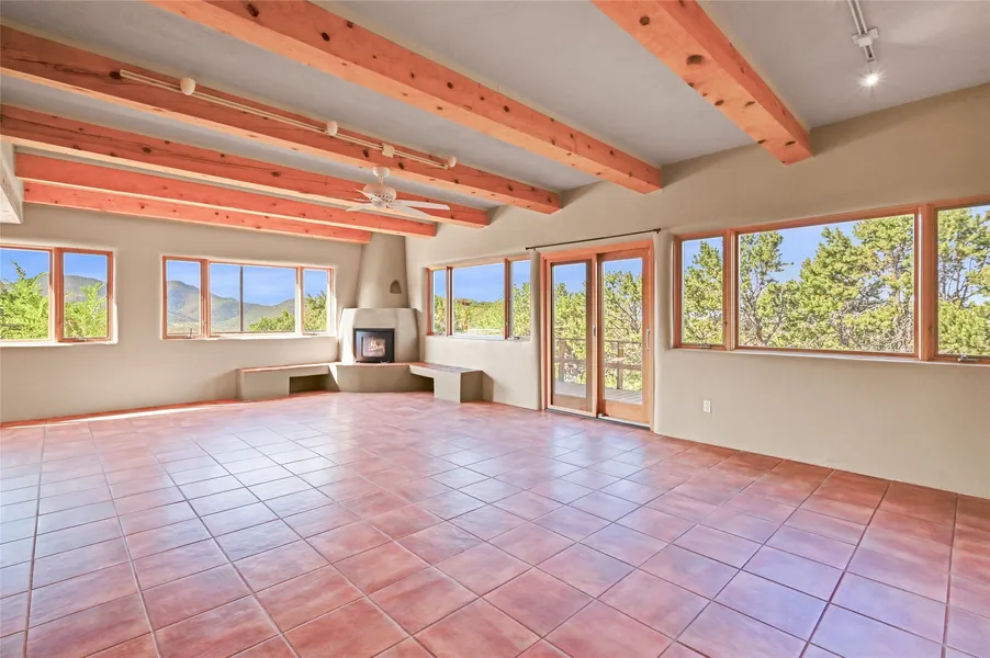This home has been a successful rental property for many years and also offers an excellent opportunity for a long-term residence. Nestled among the pinons with sweeping views of the valley and Sangre de Cristo Mountains, it provides a rare blend of privacy and convenience-just 10 minutes from the Plaza yet peacefully removed. Inside, custom fireplaces and quality finishes bring warmth and elegance throughout. The main residence connects seamlessly to an attached casita, ideal for guests, extended stays, or flexible living. Outdoor spaces invite you to enjoy dramatic light and stunning sunsets, making this home a true Santa Fe retreat.