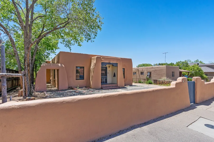 Situated on a spacious, fully fenced lot, this classic Northern New Mexico adobe offers charm, flexibility, and strong income potential. The character-rich main house features wood floors, artisan details, and a cozy fireplace, while a separate guest house-eligible for short-term rental-provides immediate income opportunity. Recent updates include refreshed bathrooms, lighting, appliances, and interior paint. With no historic restrictions, favorable zoning, and ample off-street parking, this is a rare investment or live/work opportunity in a sought-after Santa Fe location.