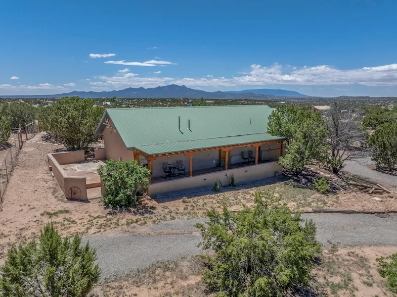 Escape to serenity with this truly unique 1200 sq. ft single-family home perched atop a peaceful plateau just off Hwy 14. Situated on 2.5 acres with gated access, this property offers privacy, security, and panoramic mountain views in every direction perfect for soaking in spectacular sunsets and the quiet stillness of nature. Crafted with rustic charm in mind, the home features brick floors, and a traditional kiva fireplace that brings warmth and Southwestern character to the living space. With 2 bedrooms and 1 and 1.2 baths, it s the ideal size for a peaceful retreat or full-time living. Enjoy the expansive outdoor space, ideal for horses, gardens, or simply enjoying the wide-open sky. The 2-car garage offers ample storage, and the location provides convenient access to Santa Fe while feeling worlds away from the hustle and bustle. If you re seeking a western lifestyle surrounded by natural beauty and timeless charm, this is the one.