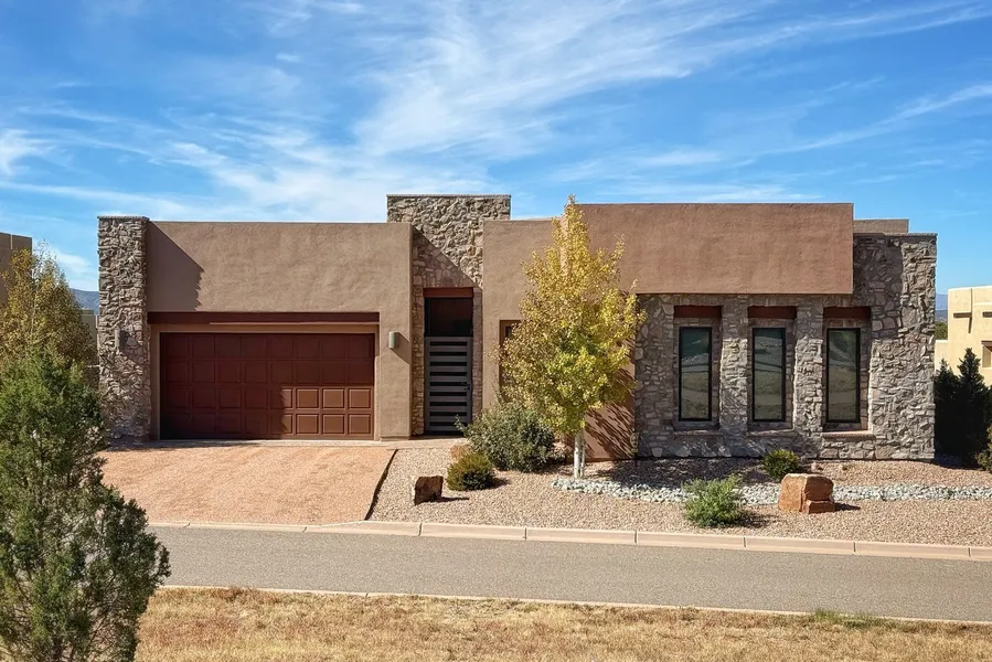 Built in 2019 and lightly lived in, this 3,111 sq/ft home in the Las Terrazas enclave of Las Campanas is beautifully maintained and move-in ready. The open-concept layout features no interior steps and a floorplan designed for both comfort and flexibility. With four bedrooms and four baths, the home includes a dedicated space that works equally well as an office, library, sitting room, or studio. The fourth bedroom could also serve any of these uses. One of the bedrooms is configured with two rooms, offering options for an art space, children's playroom, or private guest suite with extra space. Modern light fixtures have been updated throughout, and a tankless water heater delivers on-demand hot water, programmable by timer or continuous flow. The spacious 2-car garage adds everyday convenience, while thoughtfully placed windows frame panoramic western views and stunning high-desert sunsets. Located in Santa Fe's premier club community-with access to private club membership (upon approval) for world-class golf, fitness, dining, and spa facilities-this home offers beauty, function, and exceptional value in a peaceful, gated setting.