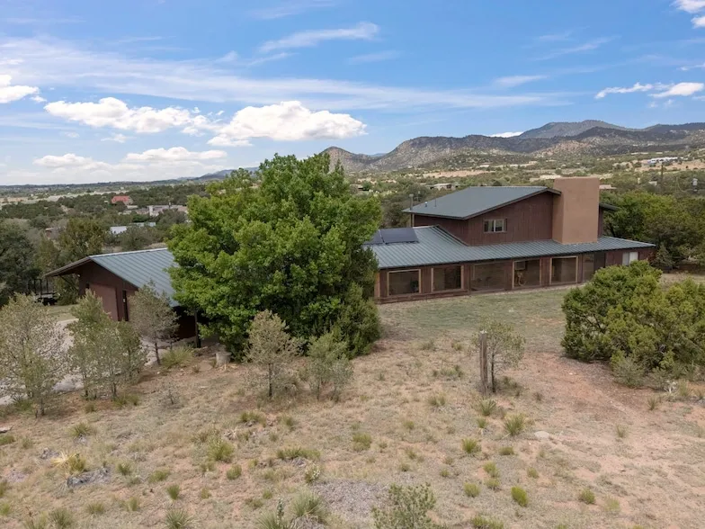 Come home to this charming 3-bedroom, 2.5-bath, 2,504 sq ft ADOBE home on a peaceful and fully usable 3.8-acre lot just minutes from the heart of Santa Fe. Authentic exposed adobe brick walls throughout the home is topped with a durable metal pitched roof, a classic Southwestern feature that adds both beauty and durability. A spacious sunroom bathes the home in natural light, ideal for morning coffee, creative projects, or even a thriving greenhouse. The expansive living room features a cozy wood-burning fireplace, perfect for relaxing evenings or hosting gatherings. Horse lovers and outdoor enthusiasts will appreciate the ample space for horses, RVs, trailers and toys. From the property, enjoy sweeping views of the mountains and the twinkling city lights of Santa Fe. The sunsets here are simply unforgettable. Enjoy quick access to downtown Santa Fe, medical services, shopping, and cultural amenities. For commuters to Albuquerque or Los Alamos there is convenient and easy access to the I-25 freeway. Close to Arroyo Hondo Open Space Trail Head. A new septic system and leach field was installed in May 2025, providing lasting peace of mind. Priced at its 2023 appraised value, this home represents incredible value in an unparalleled location.