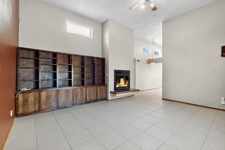 This beautifully, well-maintained single-level two-bedroom home is located near schools, shopping, a park, and a train stop. High ceilings with clearstory windows bring in much natural light, and the woodburning fireplace welcomes you with a great first impression. Two custom patios create a large entertainment area with great sunset views and a peaceful arroyo. There are cherry & pear trees as well as grape vines in the low maintenance backyard.