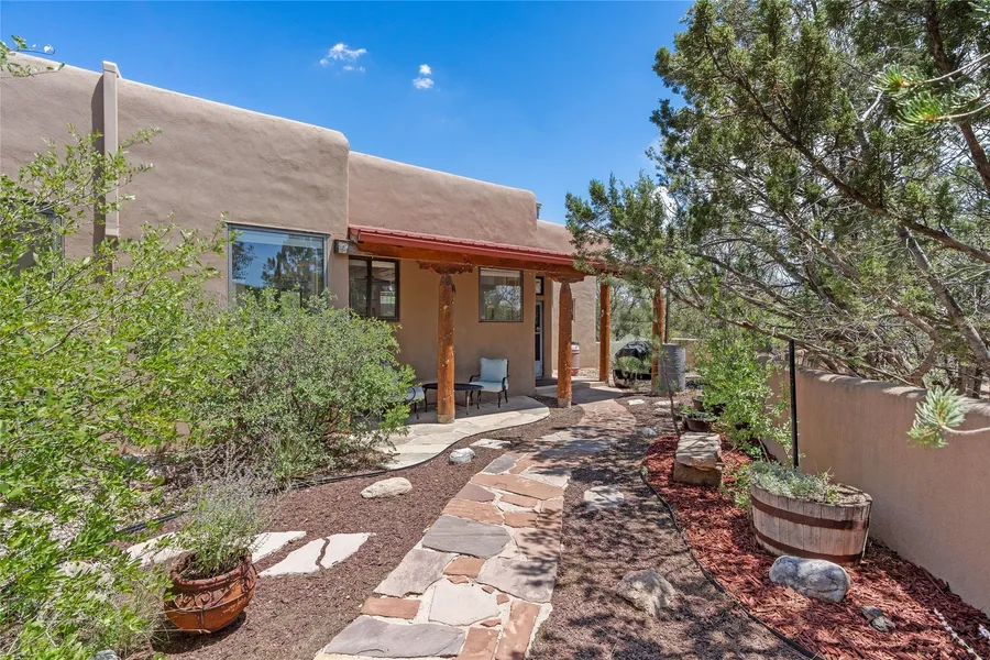 NO HOA, Move-IN Ready, Seller Paid Home Warranty included! Located on over an acre with unbeatable access to all that Santa Fe has to offer, this beautifully updated home offers views of Sun and Moon Mountains and an open, flexible layout ideal for modern living. Tongue-and-groove ceilings with recessed lighting run throughout the main living areas, complementing the abundant natural light that pours in through large windows. The updated kitchen features new granite countertops, newer Bosch and Samsung appliances, plus a RO filtration in the kitchen. The kitchen flows seamlessly into the open-concept living and dining spaces. Featuring two cozy fireplaces that create warmth and ambiance, while mini splits provide heating and cooling year-round. With three spacious bedrooms-including two that function well as primary suites. A standout feature is the attached studio with its own entrance,...