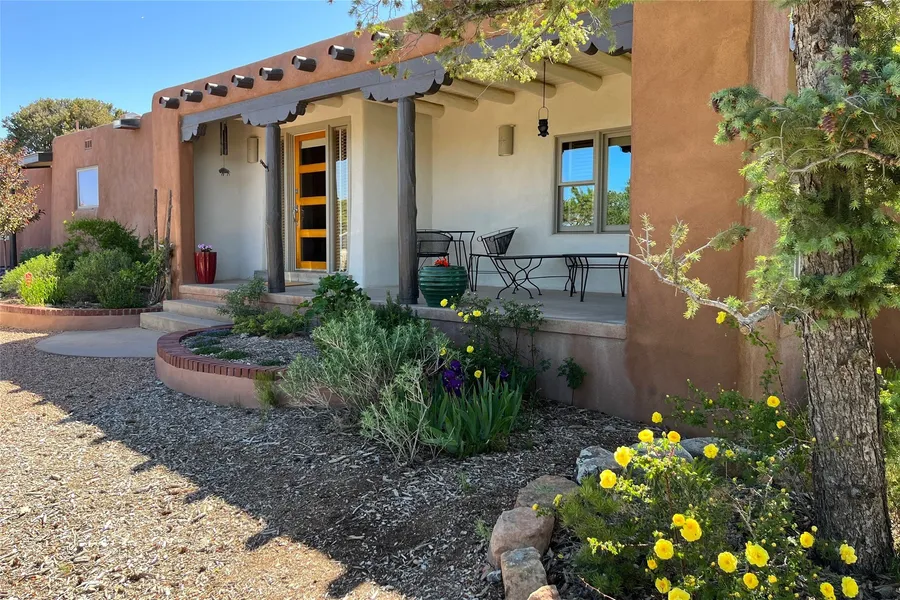 Centrally located in this quiet Museum Hill neighborhood with stunning mountain views from every room, this chic and updated 3,366 +/- sq. ft. home is situated on 1.1 +/- private acres with a fenced and gated backyard ideal for raised bed gardens and nature enthusiasts. There are are a total of 3 bedrooms and 3 bathrooms. All the bedrooms are situated on the main entry level. Downstairs, a third living area with a 3/4 bathroom and an additional washer and dryer, could function as a private guest quarters with its own access, or as a flex space/office - perfect for a growing family or professionals needing additional work space. A large kiva, wood-burning fireplace anchors this cozy space. Upstairs, the open-concept living/dining room look out onto maturely treed and landscaped views perfect for seasonal living with plenty of room for entertaining. A front entry portal inspires the senses with sunset views. The spacious kitchen with bar seating, stainless appliances, and granite countertops has another family room adjacent to it with a large wood burning fireplace and backyard access. The home is bathed in natural light and skylights. Wood and tile floors cascade throughout adding to the organic warmth of the home. The entire property has been lovingly maintained and updated with spa-like bathrooms and versatile functionality. Solar panels have been added and are owned by the Sellers. Forced gas heating and air-conditioning make this home very comfortable and affordable in all seasons. Accessibility to the downtown and South Capitol areas are what make this property an ideal location to call home.