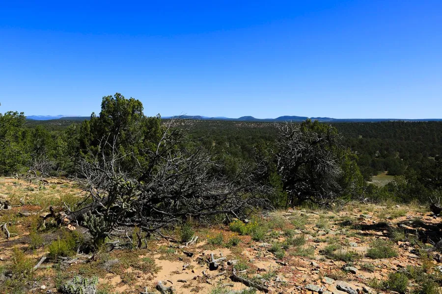 Acres of land --nearly one half square mile of it-- means vast privacy and possibilities. Gentle tree-studded terrain with views of the Sangres, the Arroyo Salado valley and Rowe Mesa. Feels far away, yet is just 25 minutes from Santa Fe and a quick shot to Eldorado's Agora Center, and all of its amenities, via a county-maintained road. Excellent, off-the-grid opportunity for a ranch or private retreat under the Big Southwestern Sky.