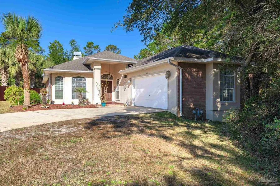***OPEN HOUSE SATURDAY 1/15 11AM - 1 PM*** Live the Florida lifestyle in this spectacular Gulf Breeze cul-de-sac home with private backyard with a pool! This 3 bedroom, 3 bath home lives much larger than its square footage and has no wasted space! The adorable front porch and mahogany double front doors invite you inside, where you'll find upscale touches like travertine flooring and crown molding throughout most rooms. The wide-open floor plan features a living space with wood-burning fireplace with granite surround, wet bar with beverage cooler, and surround sound system. The spacious kitchen has granite countertops, black appliances including trash compactor, glass block and transom windows, under-cabinet lighting, and wine rack. The breakfast bar offers seating for 6 or 7 and there is a large breakfast area overlooking the pool as well. Laundry becomes easy in the oversized laundry room with transom windows with tons of natural light, and a desk that can double as a folding station. No carpet in this home since the bedrooms have luxury vinyl plank flooring and the bathrooms are tiled. The huge master retreat has a deluxe master bathroom with double vanity, jetted tub, separate shower, and a walk-in closet with built-in storage. 3 sets of sliding glass doors bring the outside in and allowing the natural light to pour into the master bedroom and great room. The backyard is an entertainer's dream with a screened in lanai, sparkling swimming pool and a screened pool enclosure, and fully fenced grassy area. Additional features that make this home stand out include an electronic front door lock, a smart camera doorbell, 3 exterior security cameras, and 5 floor-to-ceiling Black & Decker cabinets in the garage. This property is truly a unique find with its central location, oversized lot with adjacent natural greenbelt that gives you a private back yard, and a brand new roof installed prior to closing. Check out the 3D tour and schedule your showing before it's gone!