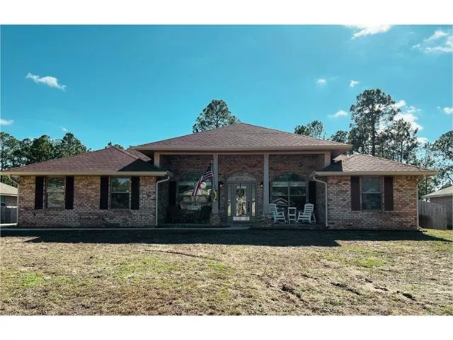 Spacious all brick, 5-bedroom home just shy of acre that's fenced & backs up to Greenbelt for just over $197/sf. The home has recently been painted thru-out. Split bedroom floor plan; master with private bathroom, walk-in closet, soaking tub, separate shower & double vanity. Master bedroom has tray ceiling & access to private covered back patio. The kitchen has an abundance of cabinets, large pantry, breakfast bar, dining nook, stainless steel appliances to include smooth top range with double oven, microwave, dishwasher & refrigerator. The formal dining room is currently being used as an office. Bedroom #5 private access to back patio. Covered front & back patio, ceiling fans in living room, 2" blinds thru-out, granite countertops in kitchen & bathrooms. Laminate flooring in main living areas, tile in bathrooms & carpet in bedrooms. The owners installed new septic drain-field 2022, installed new fence & gutters in 2021. Storage shed conveys in "AS IS" condition. Located in Holley by the Sea with community pool, tennis courts, boat ramps and so much more. Just minutes to the white sugar sand at Navarre Beach!