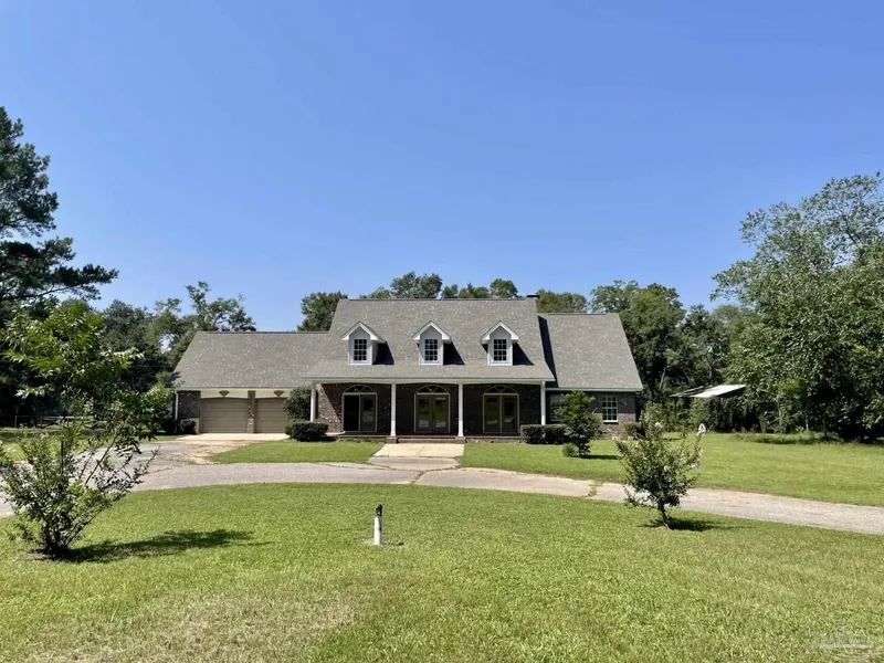 This rare 5 acre park-like property is being offered for the first time on the open market. This custom designed home makes a statement! With a grand front porch with tailored wood columns and triple French doors under peaked dormer windows, you are sure to be impressed. The circular asphalt drive provides easy access to the home and an oversized two-car garage. Soaring ceilings in the living, dining room and foyer are breathtaking, and perfectly positioned for indirect solar exposure. A comfortable great room with wood burning fireplace, brick hearth, built-ins and updated flooring flows into the casual dining area overlooking the scenic hack yard. The spacious kitchen features a double oven, down draft smooth top range, stainless refrigerator and dishwasher, coffee bar, custom wine rack, desk space and prep sink. Abundant cabinetry, countertops, and a breakfast bar make this the perfect family kitchen. A functional sun-porch is the perfect attached space for pets or plants. The utility/mud room has a half bath just off the garage, large walk-in pantry, laundry folding cabinet and utility sink. The downstairs master ensuite features 2 walk-in closets, deep jetted tub, separate shower, water closet, linen closet and 2 vanities. A true upstairs landing is the perfect living space for 2 large bedrooms, office with closet (no window), and cedar lined storage room. There is no wasted space anywhere in this home. Roof replaced in 2021; ceilings show the result of former leaks. The seller is offering $10,000 allowance toward repairs. Multiple features on the property convey AS IS- pole barn RV cover with up & concrete slab, pole barn on concrete slab with 2 drive through areas and 2 double doors, she shed, well, irrigation, and more. Enjoy the birds and the Southern breeze on the screened back porch. Call today for a personal tour.