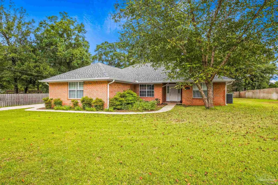 Welcome to this charming and serene dream home nestled in the heart of Milton. Situated on a spacious lot of .42 acres with a fully fenced yard and a delightful patio, this home is perfect for entertaining, relaxation, and enjoying the peaceful surroundings. Step inside to discover a well-designed floor plan that includes a formal dining room and a kitchen/dining combo. The inviting living room features a cozy wood-burning fireplace, ideal for gathering with family and friends on chilly evenings. The split floor plan offers optimal privacy, with a large master bedroom boasting a private bathroom. The master bathroom is complete with a garden tub, separate shower, dual sinks, a water closet, and a spacious walk-in closet. Two additional generously-sized bedrooms share a guest bathroom, ensuring comfort for family and guests. The kitchen and bathrooms feature beautiful oak cabinets, adding a touch of elegance to the home. Convenience is key with an inside laundry room (including washer and dryer), and a 2-car garage. Located in the highly sought-after Arcadia Mill area of Milton. Historic Arcadia encompasses 42 acres with 14 miles of nature trails. This home provides easy access to shopping, dining, parks, recreation, and Pensacola State College. Avalon Blvd and I-10 are conveniently close by. Recent improvements include a new roof in 2022, a new water heater in 2021, and a new HVAC system in 2021. The home also features a Rain Bird sprinkler system. There is no HOA, offering more freedom and flexibility. Plus, the seller is offering a 1-year Home Warranty for peace of mind. This meticulously cared for home has been lovingly maintained by its original owner and is now ready for its next chapter. Don't miss the opportunity to make this your own. Call today to schedule your private tour!
