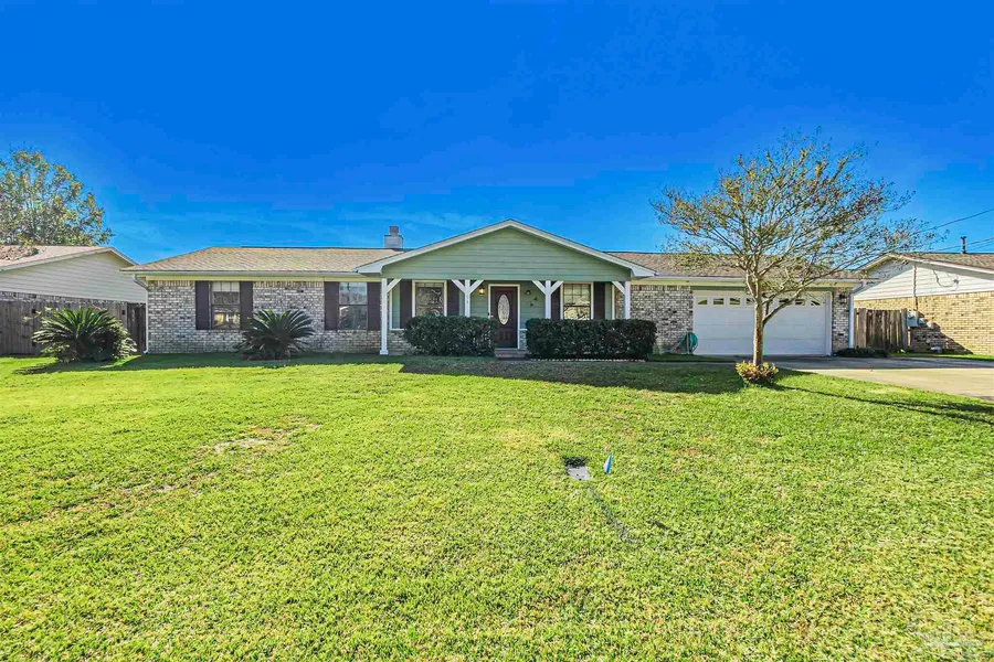 Looking for a convenient location in Pace that is move-in-ready? This 3 bed/2 bath home with a large fenced yard offers numerous living options both inside and out. The primary bed/bath offers privacy with 2 additional bedrooms and a guest bath off the spacious living room with fireplace. One of the bedrooms has an adjoining 12 x 13 room with back yard entrance that could be used as an office, playroom, extra sleeping space, man cave or any other desire. The eat-in-kitchen features an island and easy access to the laundry room. A Florida room off the kitchen leads to a cozy covered deck. Enjoy additional outside living with a large pergola with concrete pad and ample yard for any additional needs. The 2 car garage with extra driveway space has an 11 x 11 finished space with window AC that could be used as an office, studio, workout space or hobby room. So many possibilities to enjoy the Florida lifestyle! The sellers have updated the flooring and provided fresh interior paint for the new owners and the roof was installed in 2022. With a convenient location near Five Points, schools, shopping, restaurants, hospitals, and beaches are all easy to access.