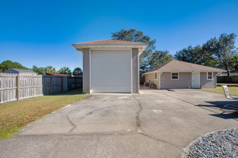 Spacious 3 bed/3 bath home in the heart of Navarre. With an open floor plan and the option for 2 Master bedrooms, plus a separate mother-in-law living area behind the house giving you an extra bed/bath and kitchen. The back patio is completely enclosed with a fireplace and walks out to the fully fenced back yard. There is also a huge 17' x 36' RV garage as well as a 6' x 16' shed. The Master Bedroom is carpeted, the rest of the home is either tile or LVP Flooring. Close to schools, shopping and just minutes to the beach.