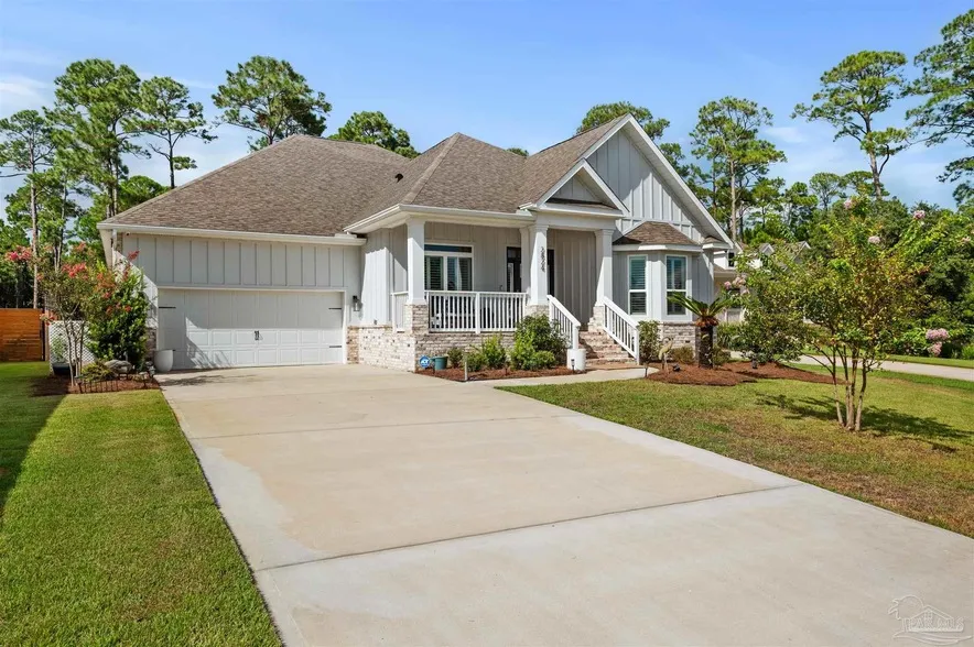 Location Location! Water view and on 1.15 acres in Gulf Breeze! Custom designed 5 bedroom 3 bath brick home with 2 car garage. The seller has done so many upgrades to include all new KitchenAid stainless steel appliances with Commercial size 6 burner gas stove/oven and hood, built in ice maker, stainless steel sink, additional cabinets and floating shelves with lights in kitchen, under cabinet lighting, additional cabinets and wall ironing board in laundry room. barn doors installed at entry of pantry and laundry room to gain the most out of the space, all new tile surround for the tubs in the bathrooms and new tile shower in master, additional electrical outlets installed throughout home, ceiling fans and built in shelving added in garage, ceiling fans and new screened in back porch, additional concrete for larger outdoor patio, trees cleared out and new fence installed, 2-100 gallon pr...