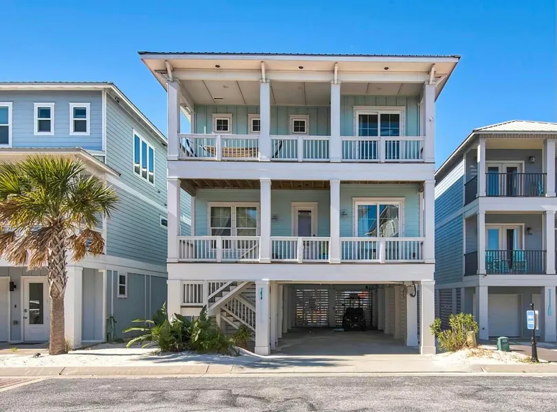 STUNNING WATER VIEWS! Discover coastal luxury in this custom home located in Navarre Beach's exclusive By the Sea gated community. Just steps from the Santa Rosa Sound, this property offers resort-style living with access to a sparkling community pool and hot tub. Inside, an open floor plan is filled with natural light from wrap-around windows and 10' ceilings, creating a welcoming and elegant atmosphere. The living area features sophisticated furnishings and a cozy fireplace, while the modern kitchen boasts granite countertops, stainless steel appliances, and ample space for cooking and entertaining. The first floor includes a queen bedroom, a bunk room, and a convenient half-bath, while the second floor features a luxurious primary king suite with a spa-inspired en-suite bath, soaking tub, walk-in shower, and private deck with breathtaking water views. Additional upstairs bedrooms incl...