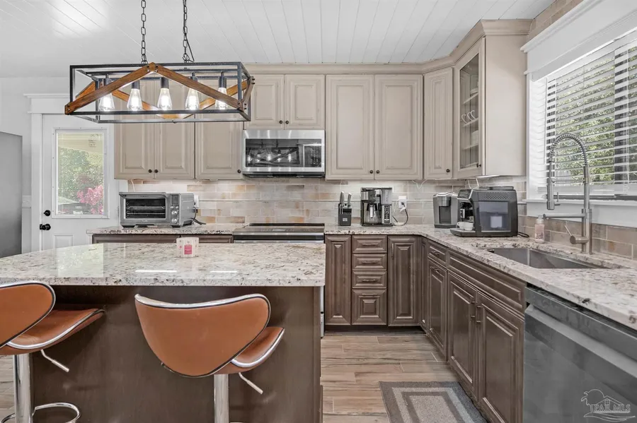 Welcome to this charming 2-story home in the desirable Robledal Estates, offering 3 spacious bedrooms, 2 bathrooms, & a versatile bonus room, all nestled on just under an acre of beautiful property. With approximately 206' of water frontage, you'll enjoy serene views & plenty of room to unwind by the water. The home features a recently renovated kitchen with sleek granite countertops, custom cabinets, stainless steel appliances, & stylish wood-look tile. The kitchen overlooks the inviting pool area, which includes a Gunite pool with a Baja shelf & a hot tub, surrounded by a spacious paver patio-perfect for outdoor entertaining. A bright Florida room brings the outdoors in, offering even more space to relax & enjoy the natural surroundings. Inside, the Living Room & Dining Room showcase gorgeous shiplap ceilings, pressed bamboo flooring, & beautiful new lighting. A 12x20 yard building pro...