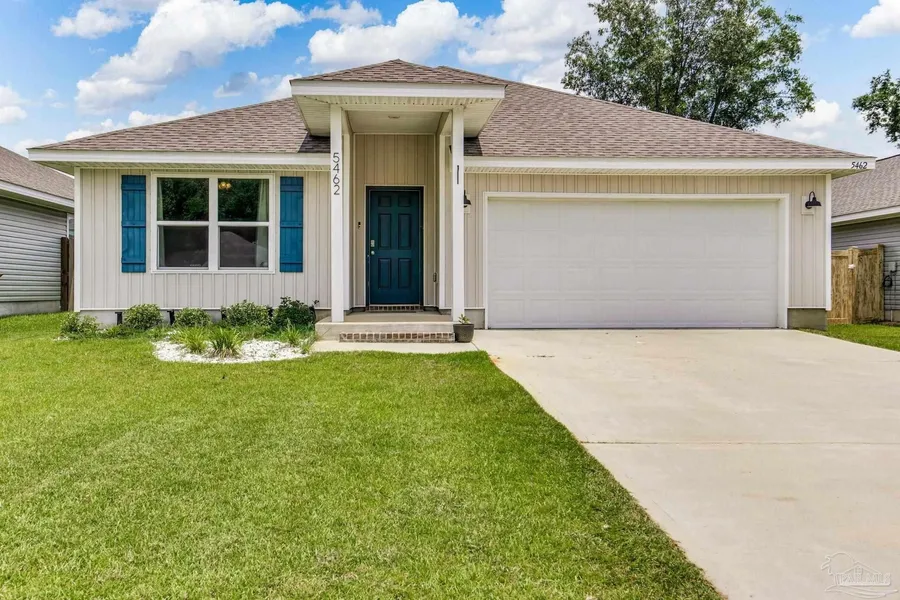 Welcome to 5462 Peach Dr, Pace, FL 32571 This well-maintained 4-bedroom, 2-bathroom home offers 1,787 square feet of comfortable living space. This property blends quality craftsmanship with thoughtful design. Step inside to an open-concept floor plan featuring a spacious living area, perfect for entertaining or relaxing. The kitchen is outfitted with stainless steel appliances, a large island, and ample cabinet space, flowing seamlessly into the dining and living areas. The primary suite includes a generous bedroom, a walk-in closet, and an ensuite bath with a double vanity and walk-in shower. Three additional bedrooms offer flexibility for guests or a home office. Outside, enjoy a fully fenced backyard with plenty of space. The home also includes a 2-car garage, a covered patio, and energy-efficient features throughout. Located just minutes from, shopping, dining, and easy access to P...