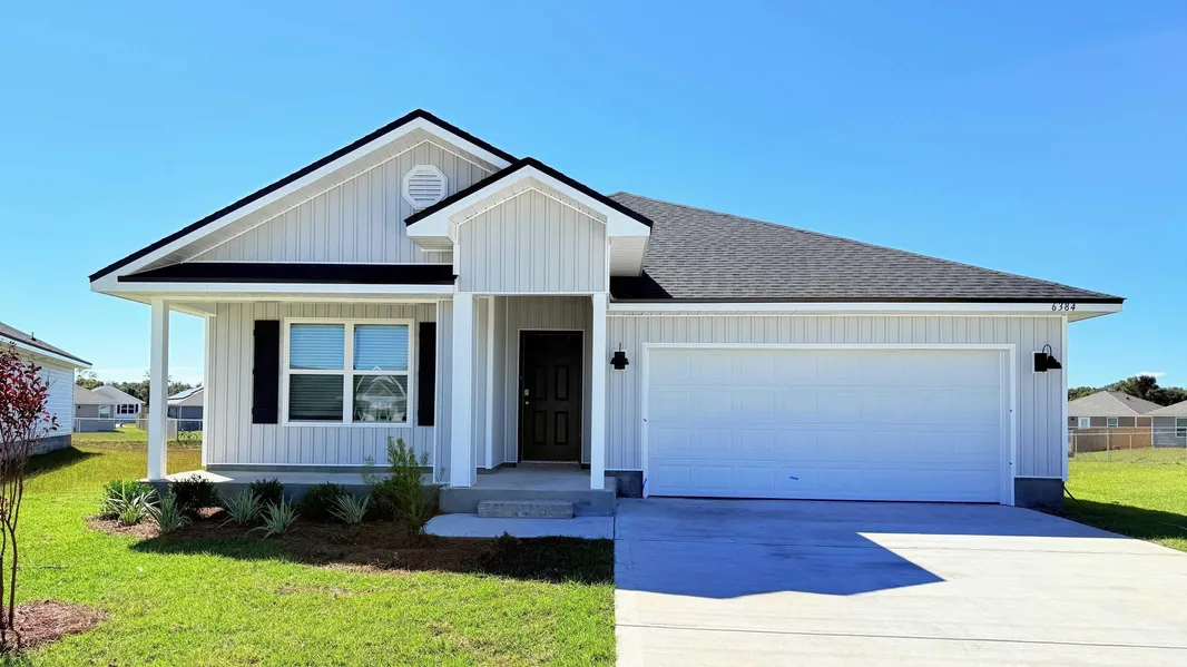Welcome to Rivers Cove featuring a beautiful community pool and playground. The Cali model, one of our most sought-after designs, offers a fantastic open layout for relaxed living. Offers 4 bedrooms, 2 bathrooms, a covered back patio, 2-car garage, and the 'Smart Home Connect' System with various convenient Smart Home devices. The well-appointed kitchen includes stainless steel appliances, a smooth-top range, built-in microwave, quiet dishwasher, corner pantry, island bar, eye-catching wood-look flooring, and plush carpet in the bedrooms. Bedroom 1 and the adjoining beautiful bath boast a large walk-in closet, double vanity sinks and more. Fabric Hurricane window and door protection is also included.